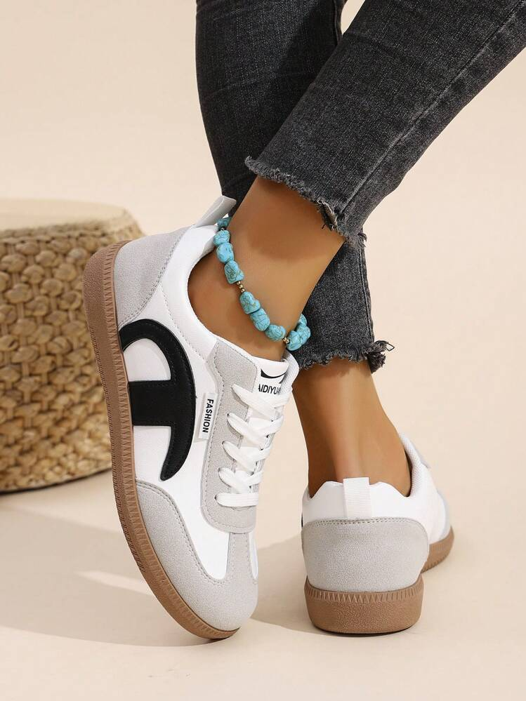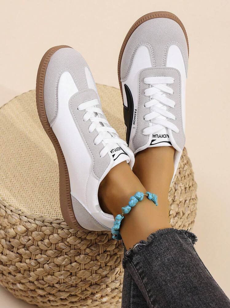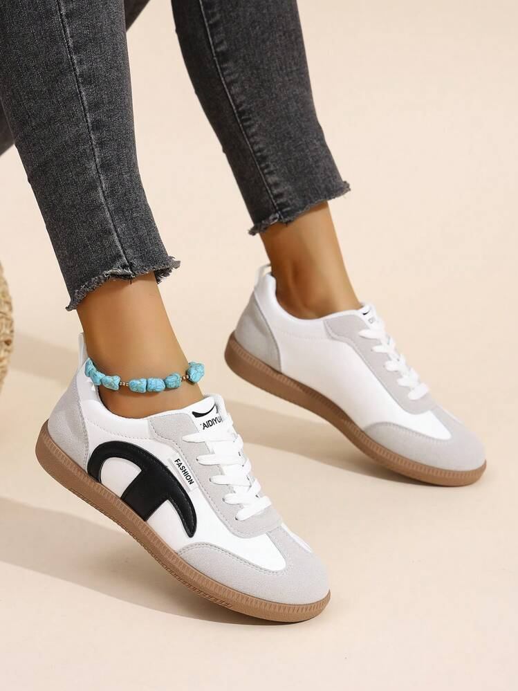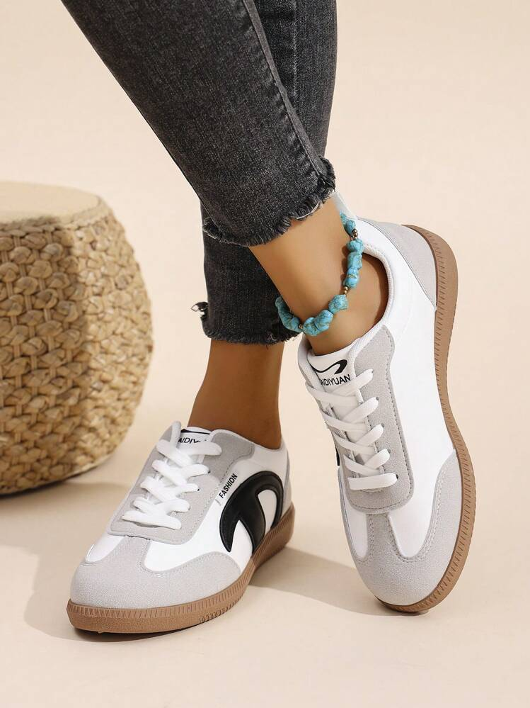 أحذية نسائية بيضاء، أحذية رياضية مسطحة، أحذية شبكية ذات كعب سميك على طراز المشاهير، أحذية جلدية بنعل منصة مضادة للانزلاق، أحذية طلابية